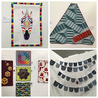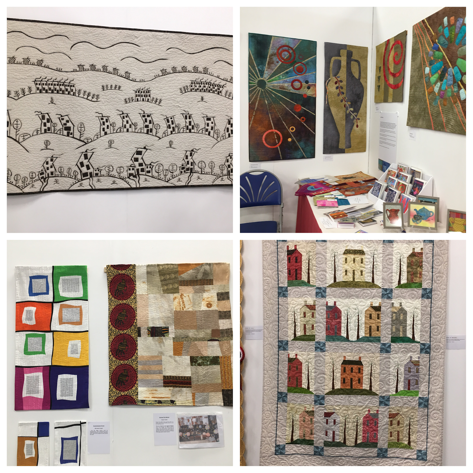 Anyway what have I been up to? A second quilt exhibition in a month, this time the West Country Quilt Show. Luckily one of the local groups was running a coach trip so no driving was involved and it was a good day out. Being a smaller show makes it easy to get around and talk to people. The different specialist groups were demonstrating their skills so there are a lot of ideas to pick up. I've done a collage of some of the photos I took.