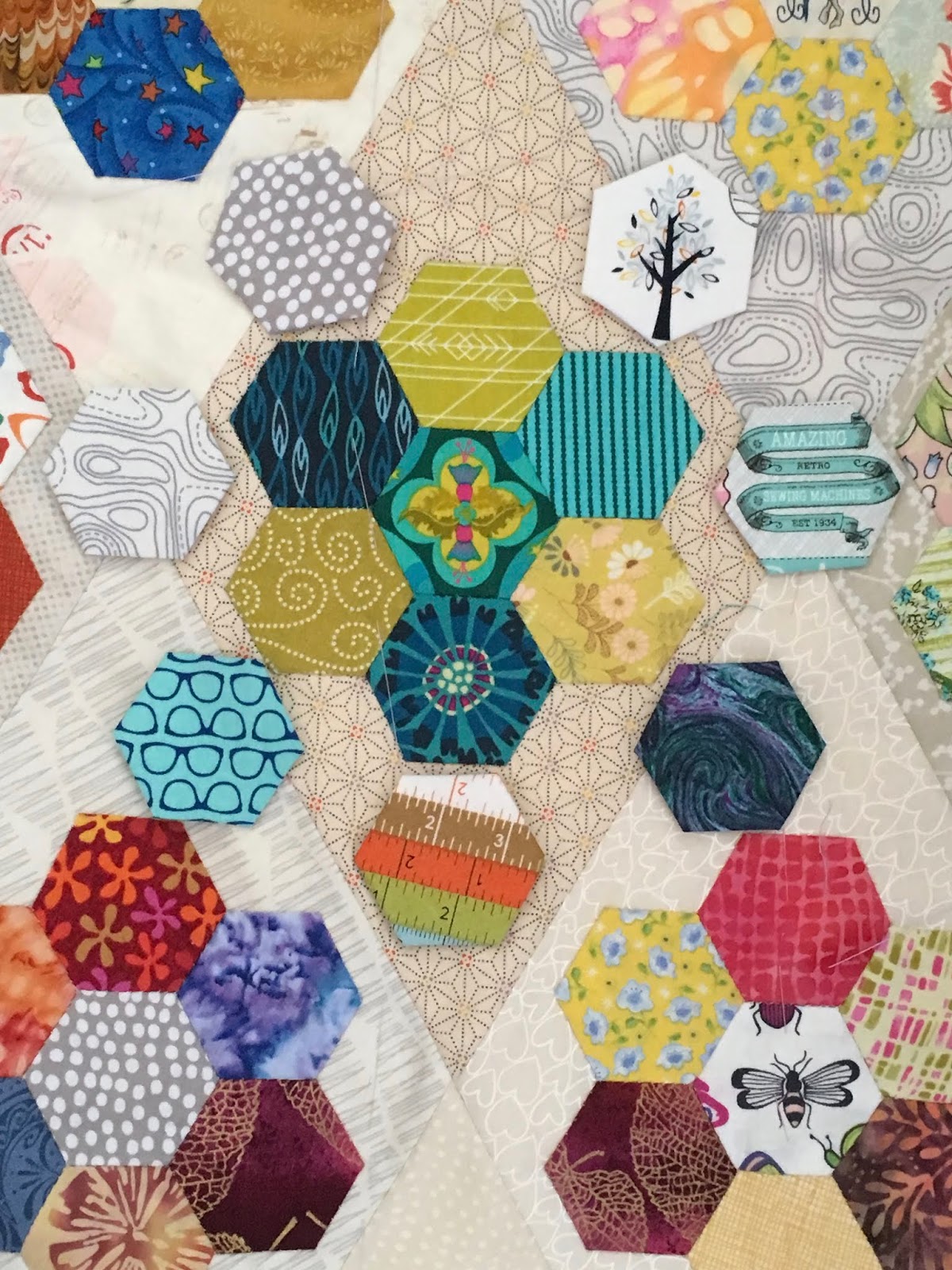 Week 9 - I-Spy - hexies are hidden amongst the Kingfisher quilt ones.