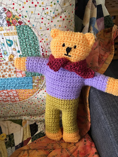 There has been a bit of crochet going on and I've made a teddy, which I started at Knit and Natter last Thursday morning and finished on Sunday. Here it is before stuffing