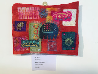 The exhibition was held in the Gallery Upstairs (it is above a cafe) at Upton Country Park which is a light airy space. There is a competition table with small 3d items, of which I had 2 but neither won. Never mind.