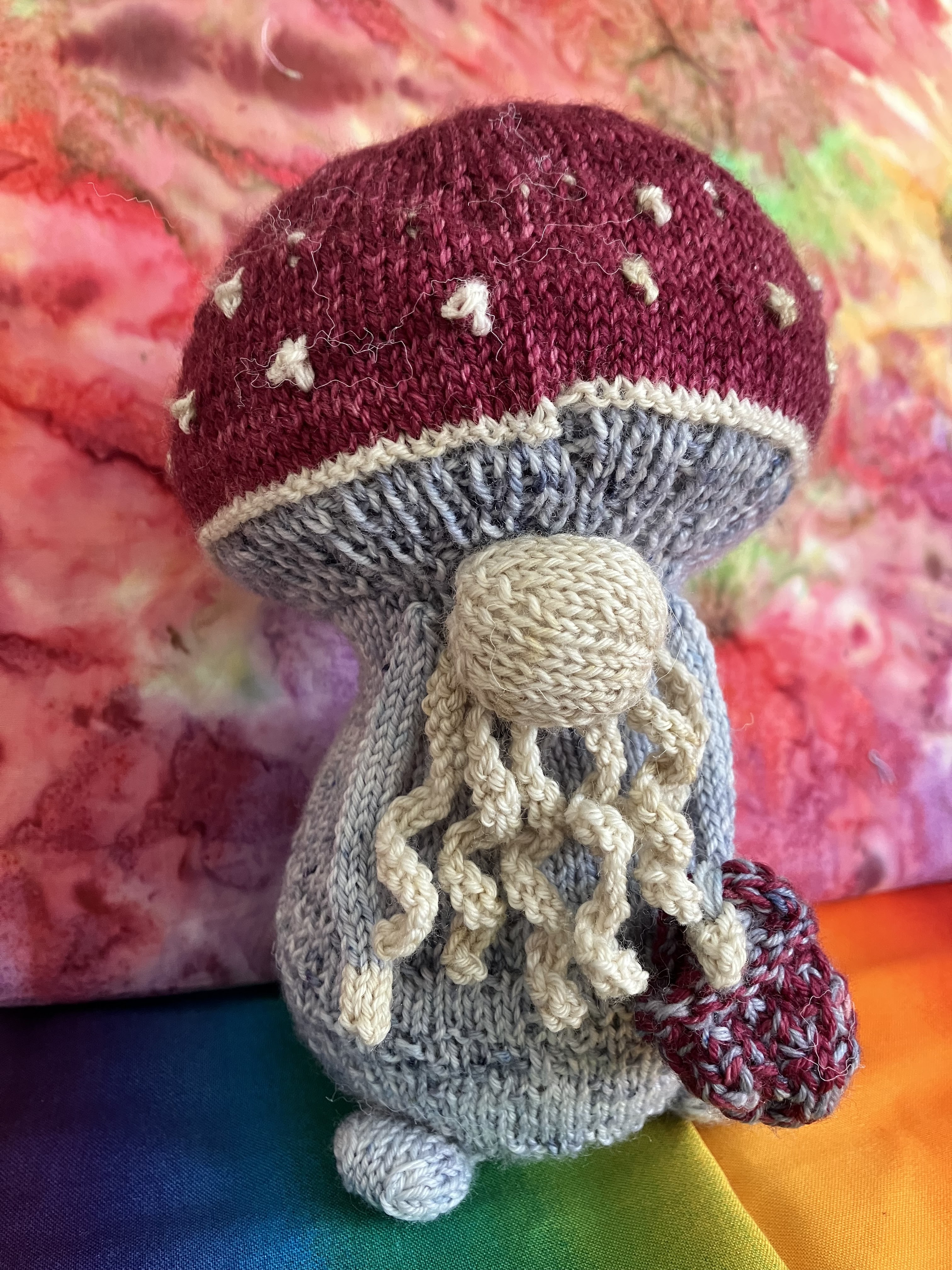 Last month I took part in a Gnome mystery knit along but I couldn’t show until 9 May. So here is the gnome, Professor Fungi, complete with basket for collecting mushrooms.