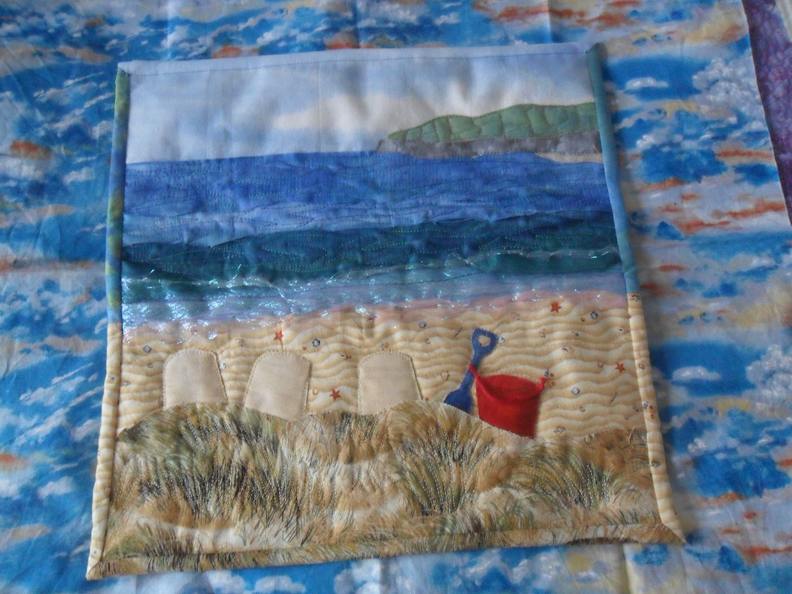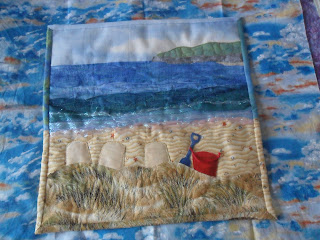 This was based on quilt made at a workshop that I did several years ago with Janice Gunner and the colours on the quilt below were inspired by sandy cliffs at Branksome Chine.